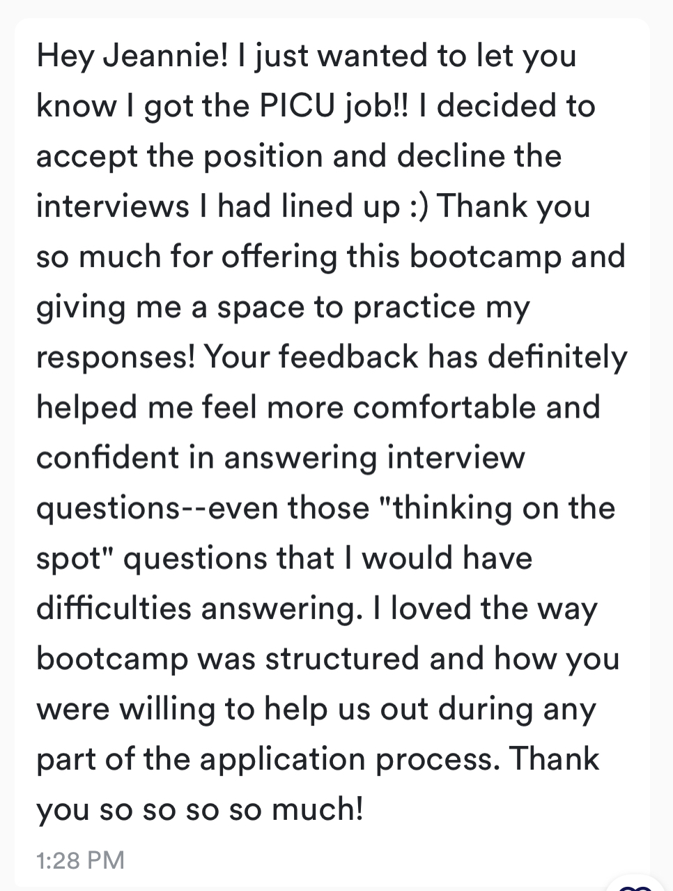 Achieve the confidence & clarity you need to score an offer and land your first RN job through the methods used in New Grad Interview Bootcamp.